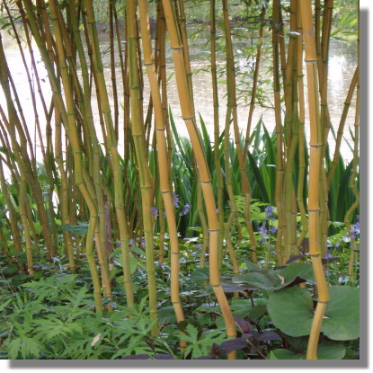 Phyllostachys is a genus of bamboo from NorthLowlands of China. Some are extremely tough cookies and very exposuretolerant. This genus offers some of the best ornamental bamboos that are trulyhardy in the United Kingdom . In their native warmer regions of China theirroot system which is intermediate can wander, however in the cooler moretemperate zones of the UK, apart from one or two exceptions they are remarkablywell behaved and reliably clump forming with slow lateral spread. Except where indicated on the left, mostare quite easy to grow with only an annual hair cut and brush out toworry about. A good organic mulching and an annual feed is always appreciated.Remember to let fallen leaves compost down around the plant to replace valuablesilica. Most Phyllostachys prefer full sun but somewill tolerate light or dappled shade, apart from that they are not particularabout the soil they are in but preferring heavier richer soils that can be keptevenly moist but not waterlogged. Once the plants are established they are fairlydrought tolerant however they need to be kept watered until they have a properfoothold.